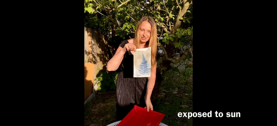 At the beginning of lockdown (after the initial panic) I started trying to think of ways to bring my photography practice online. I tried a live “Cyanotype” (sun printing) demo on different days via Instagram Live and got quite disheartened by the quality. I ditched that and tried my first Facebook Live demo from my garden ! Quality was better and a few people tuned in, but I got some of my words muddled up and after I’d stopped recording I muttered some expletives – oops! Lesson learned – the live stream runs on for a few seconds after you hit Stop! So I deleted that video and made this edit of it for Instagram: