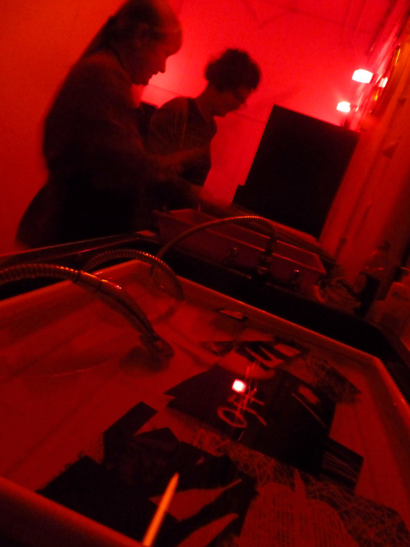 Sarah trained under expert printer Tim Rudman in specialist areas of Toning and Lith Printing (photo here by Sarah at TVU darkrooms)