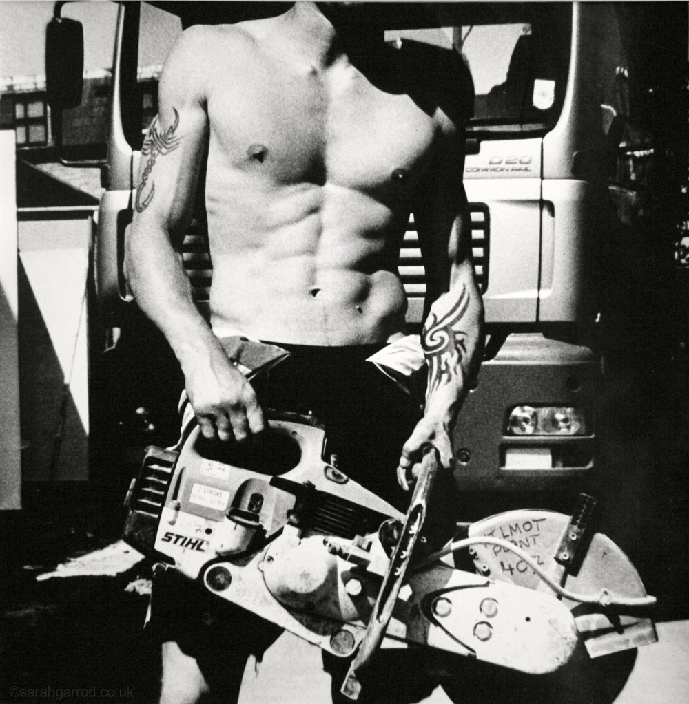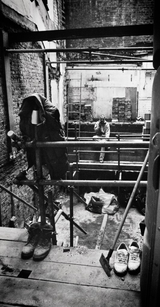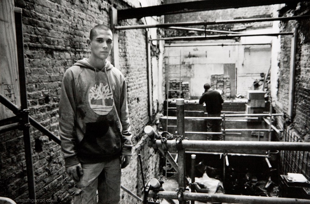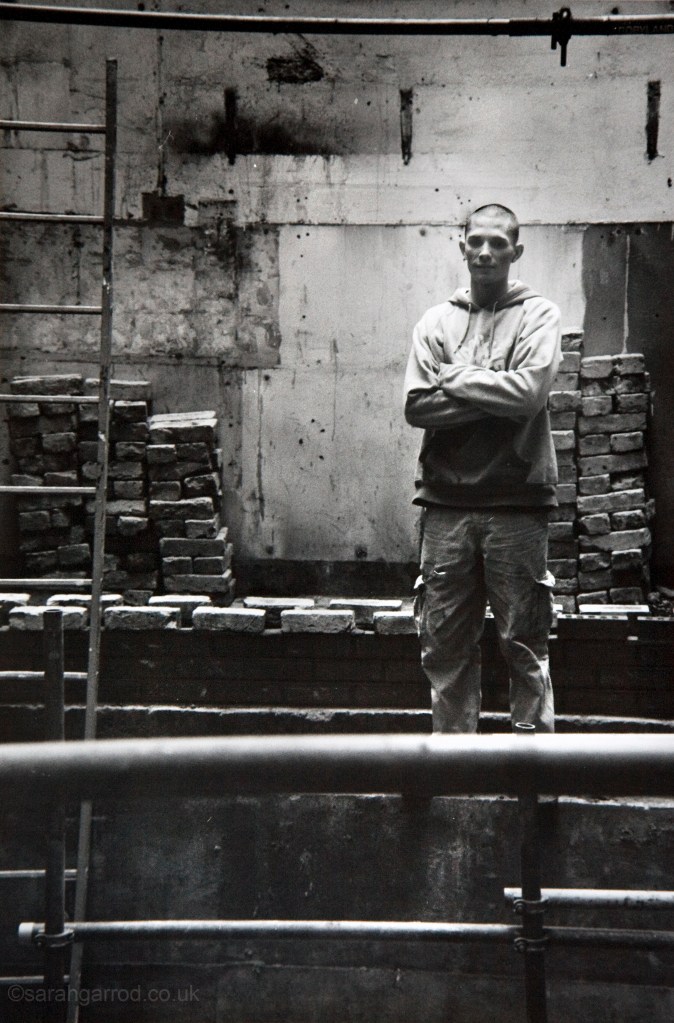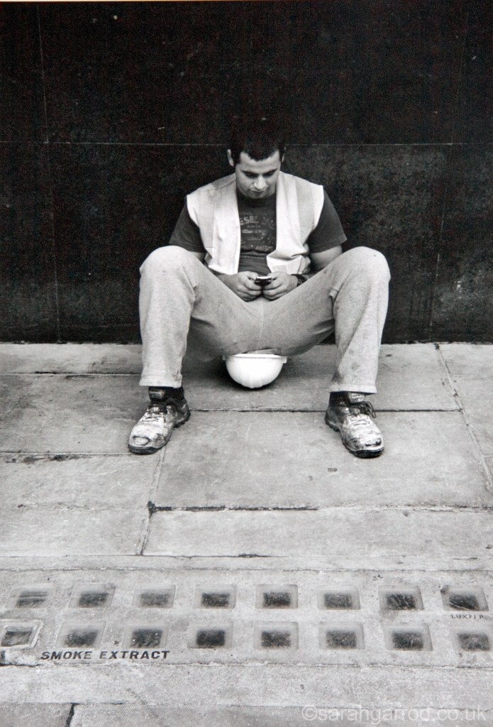 Sarah flips the male gaze. When walking around with her 35mm camera (inherited from her dad) she snaps the builders who call out to say hello. It is a challenge to catch a fleeting street portrait like this, speed is of the essence. After grabbing an impromptu shot, Sarah always tries to make contact with her street subjects and send out prints to them. This series of darkroom prints was exhibited in Spain.