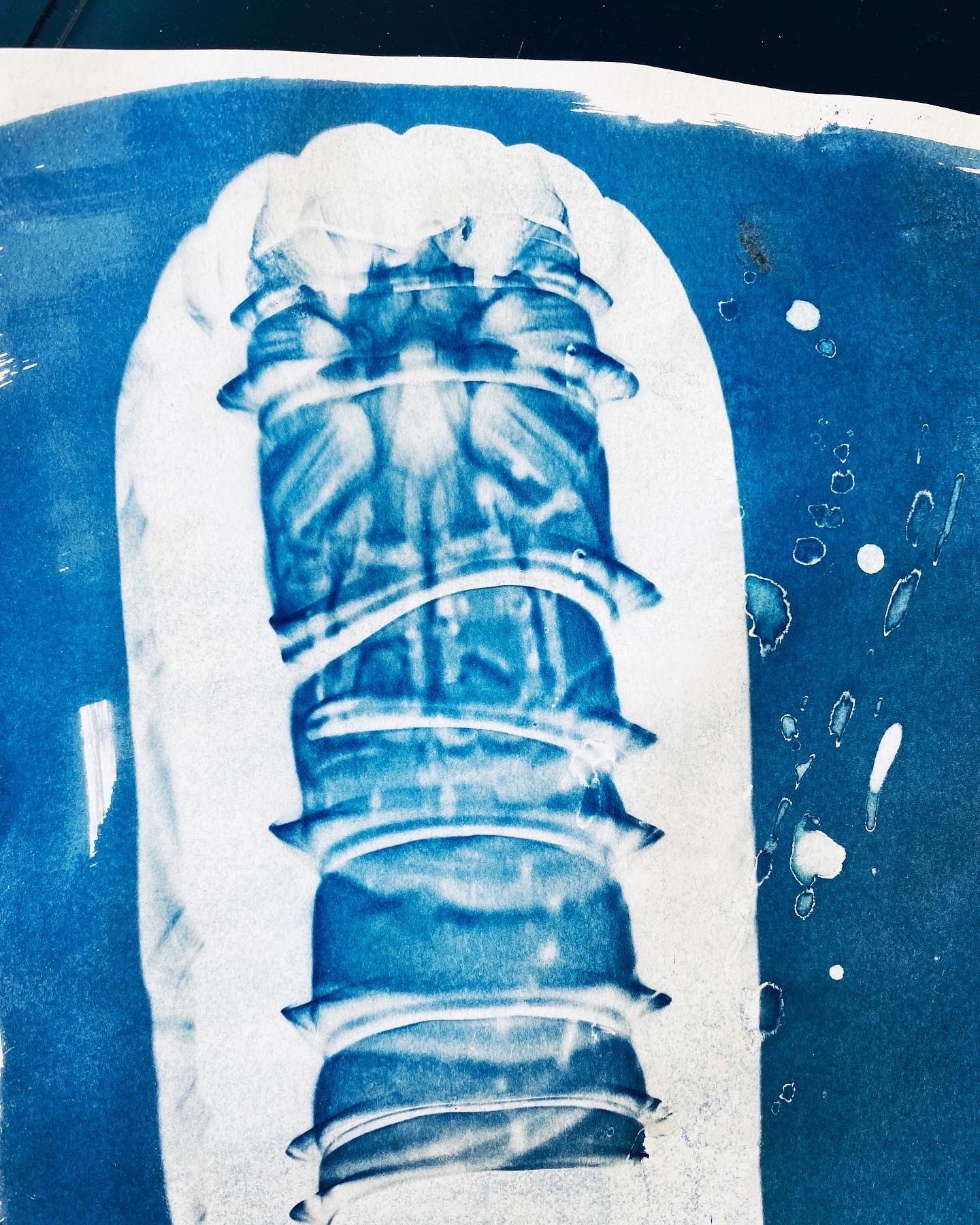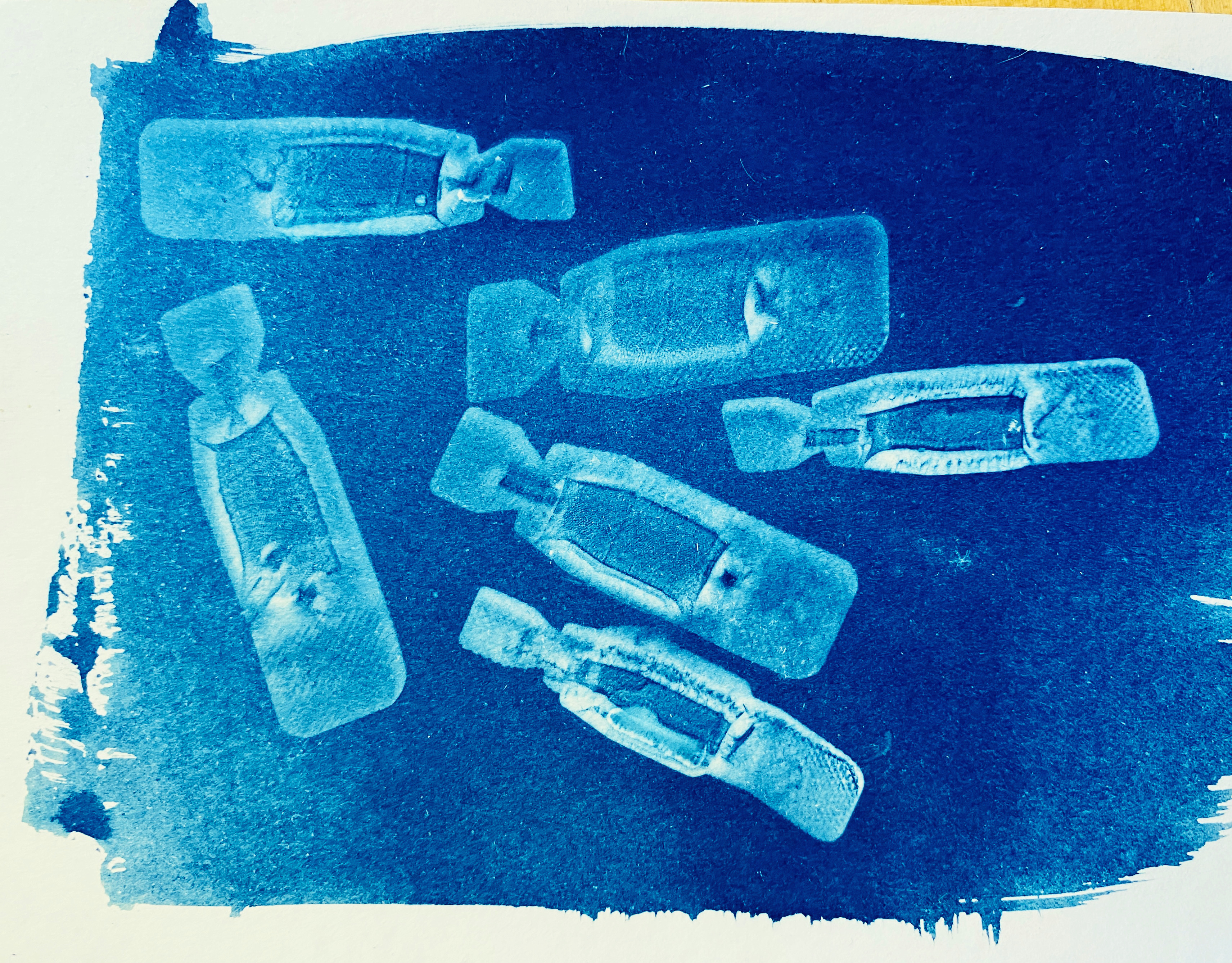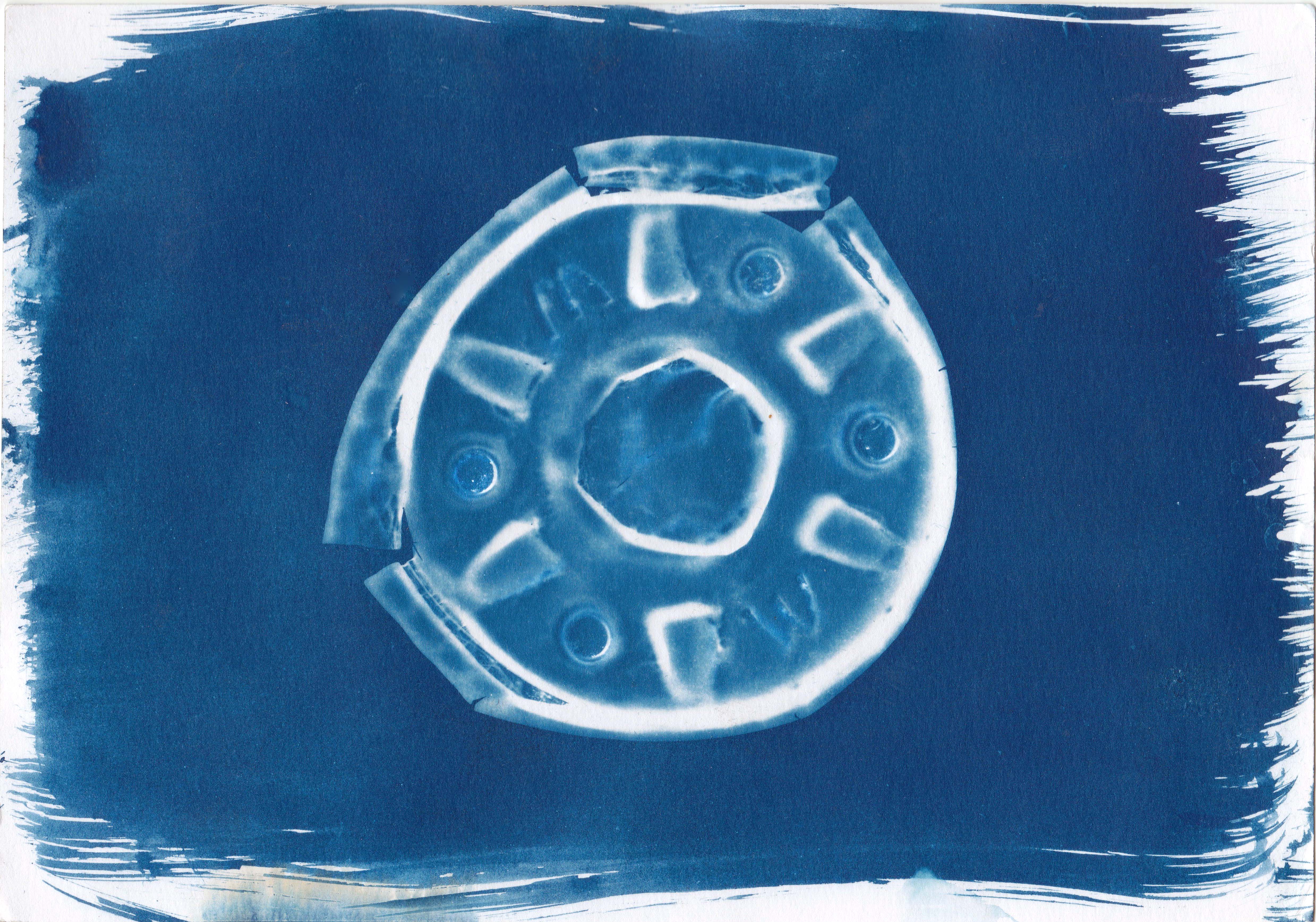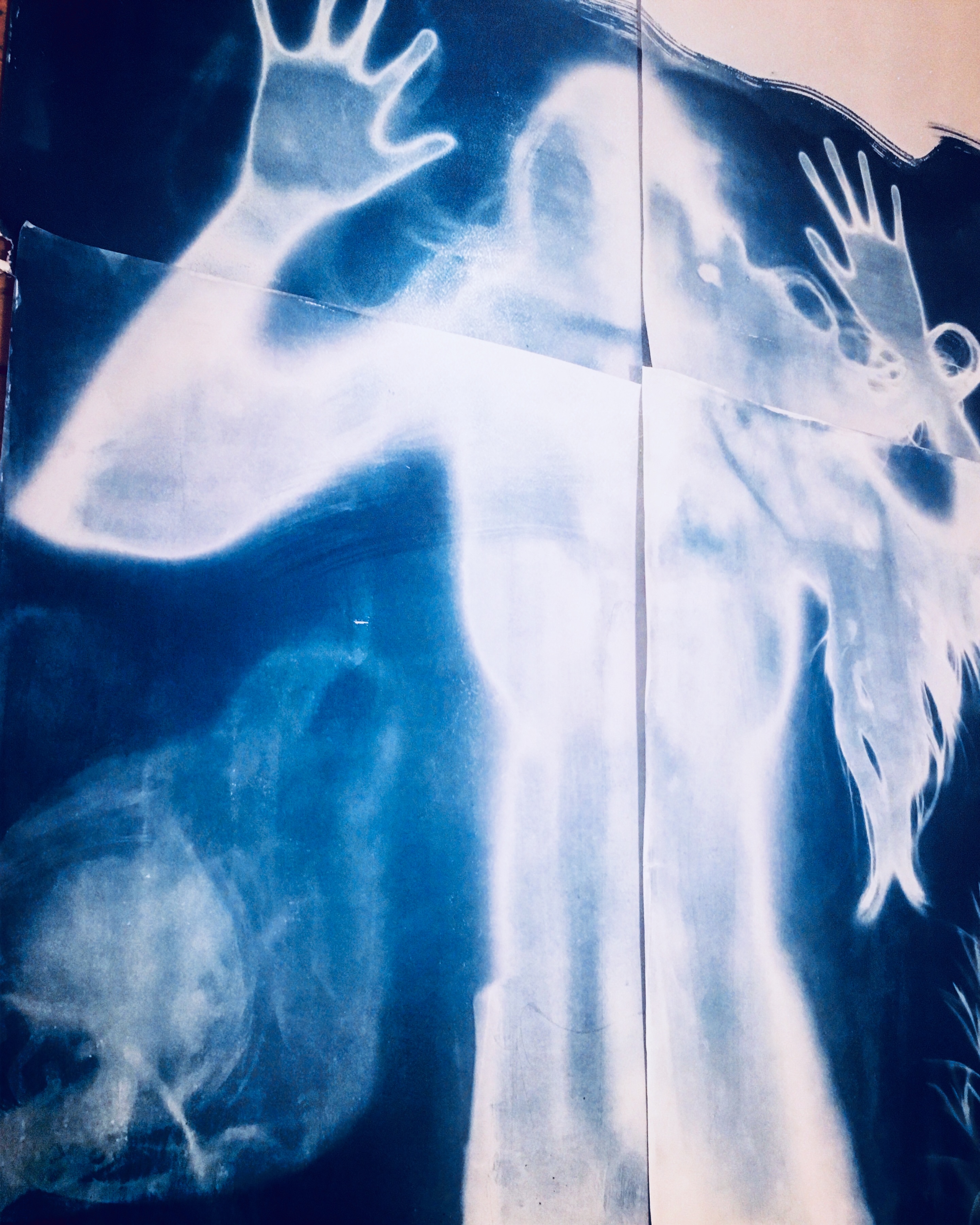 I can only “see” the mermaids through the victorian Cyanotype process which is sensitive to certain frequencies of UV light that we can’t see with the naked eye. I take home a flask of Thames water which magically turns the image into a blueprint. You won’t be able to capture mermaids on a digital camera, except perhaps as a brief silver sparkle.
