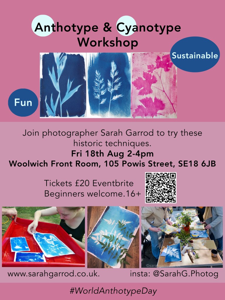 After the break, you will learn about Anthotypes. We will prepare plant emulsions from scratch using non-toxic plant ingredients. You will be able to coat paper and take it home to continue your own anthotype experiments. All this coincides with #WorldAnthotypeDay, a global celebration which this year falls on saturday 19th Aug .