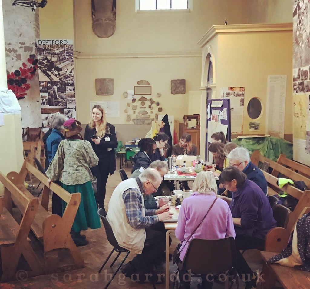 This was a full-on event I organised inside the historic and beautiful St.Nicholas Church. It was to tie-in with my commission for the Timberyard site in Deptford. We began with a tour of the church led by Maureen, and then I discussed my new work and the history that influenced it. After that I chaired a panel discussion on the history of Deptford dockyard. Speakers were Malcom Cadman (John Evelyn Garden), Richard (local writer and dramatist), Maureen (church) and Vanessa (Pepys Forum).