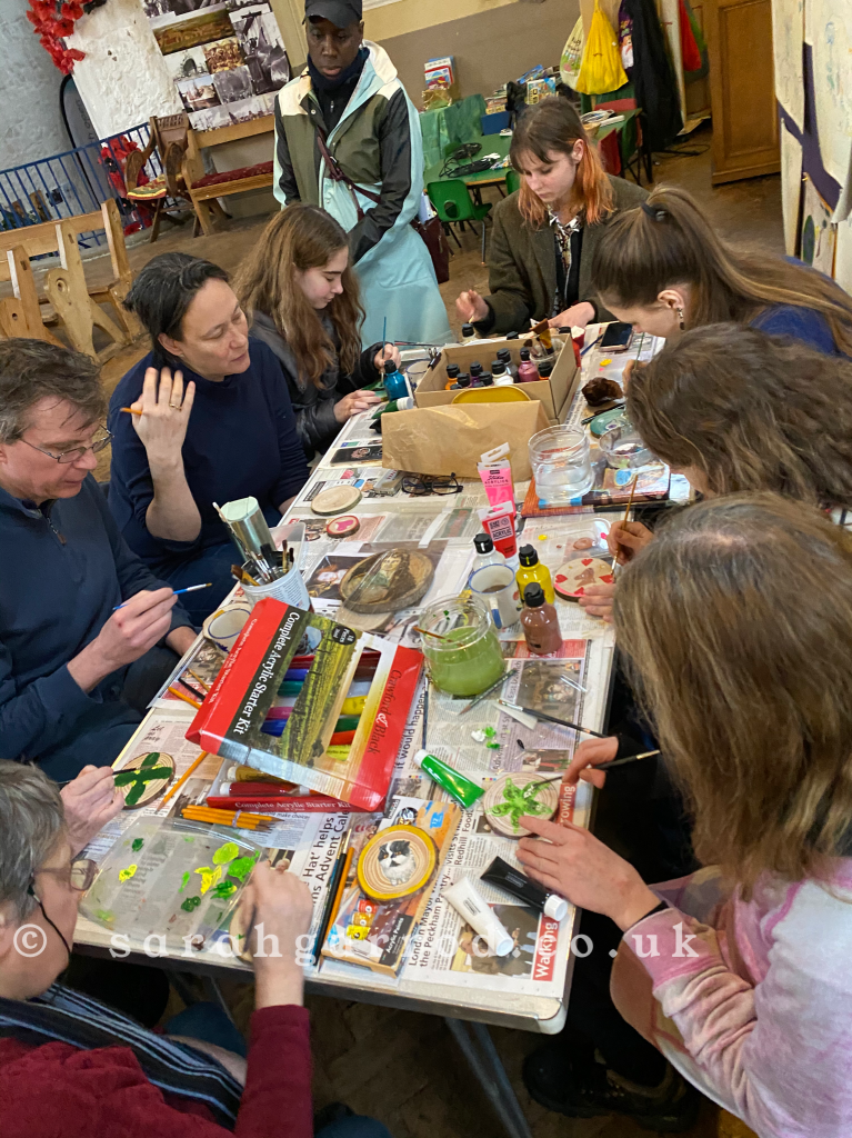 It was an incredibly stormy day, but the event was well attended. We finished with tea and cakes galore, and a practical activity in painting log slices which was very popular.